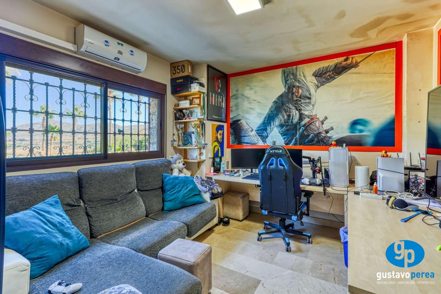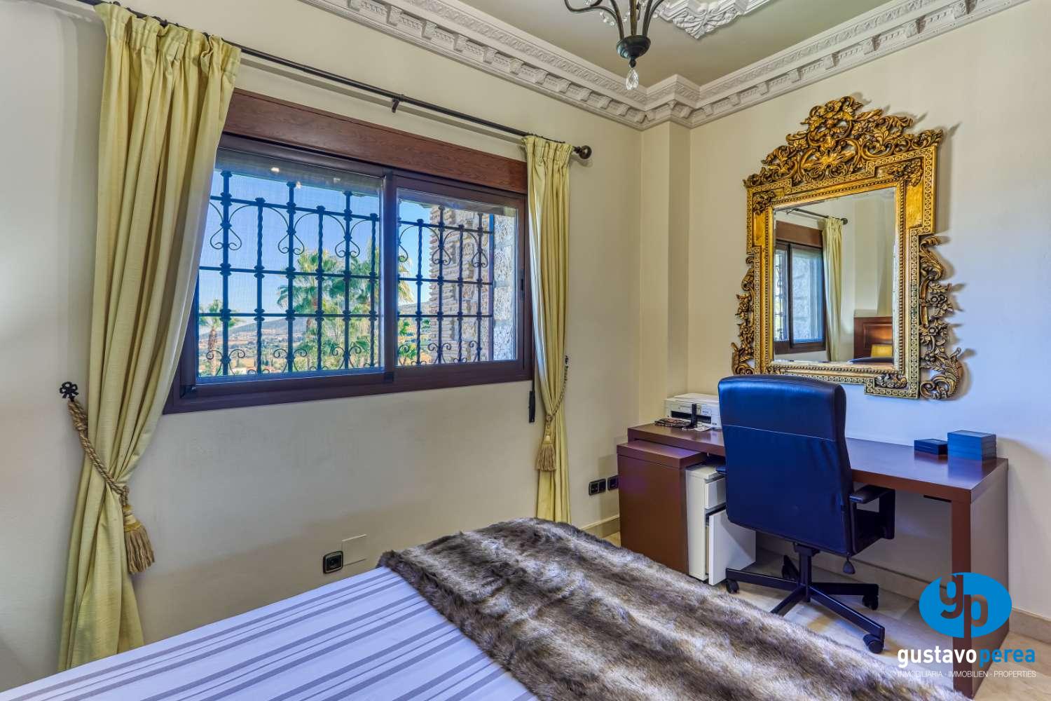 Impressionant Vil·la senyorial en dos plantes, situada a molt tranquil junts al camp de golf i amb trets d'unes vistes fantàstiques. Parcel·la amb piscina d'aigua salada amb jacuzzi, jardins amb reg aut., Barbacoa, caseta i Leaero. 5 habitacions, 3 vestidors, 4 banys, lavabo, 2 cuines equipades amb, Bugaderia Office, saló-menjador amb llar de foc, Terrassa, porxo, celler, Aire acondicionat, Calefacció per terra radiant, panells solars. Pis: 2 dormitoris, bany, cuina, safareig.