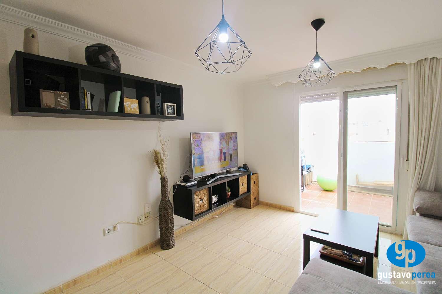 The property offers 66 m² built area and features a spacious living room, fully fitted kitchen with appliances, two bedrooms and one bathroom. It also benefits from a 6 m² private terrace, perfect for enjoying outdoor living.