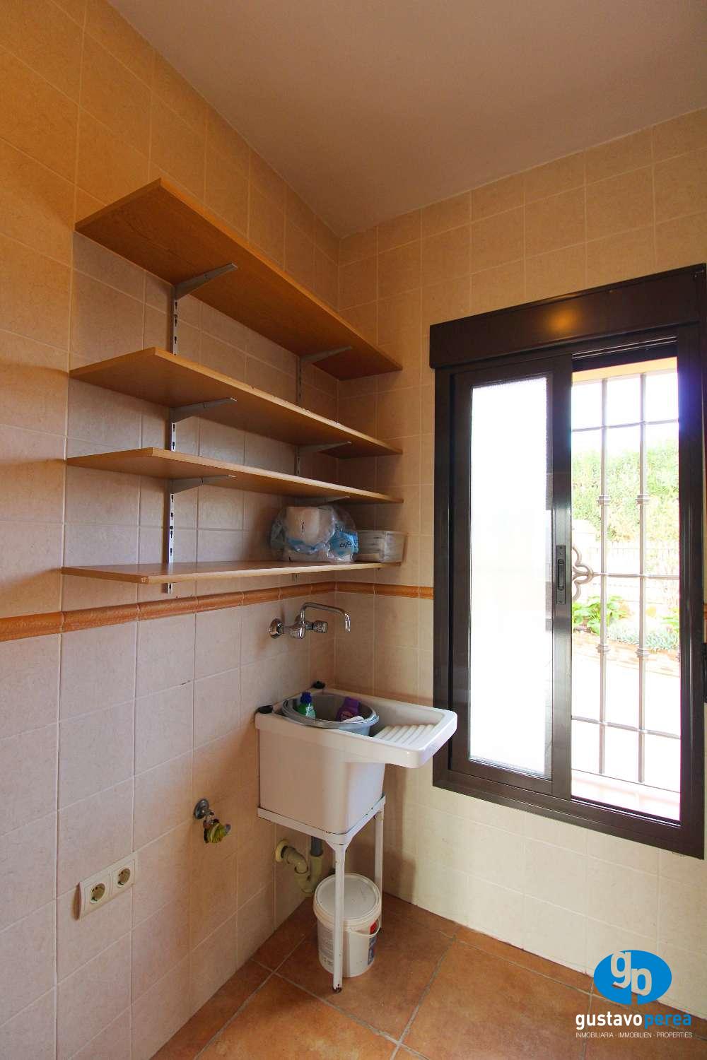 La vivienda dispone de cinco dormitorios, todos con aire acondicionado y armarios empotrados, cuatro baños completos, dos cocinas amuebladas, lavadero, trastero y dos amplios salones-comedor.